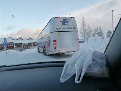 Bussikuski ei kuuluttanut pysäkeillä, minkä hotellin tai hotellien asiakkaille kukin pysäkki on se oikea, jolla poistua. Kun meidän tämänkertaisella hotellillamme (Sokos) ei ole ”omaa” pysäkkiä, emme osanneet jäädä oikealla pysäkillä, vaikka Levi on muuten minulle vanhastaan tuttu.